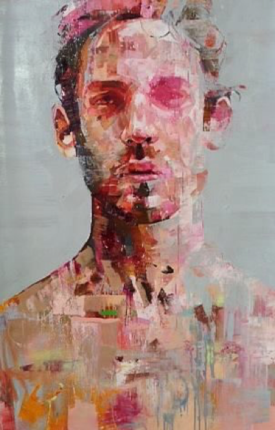 The third and final artist exhibited in The Fragmented Portraitis Andrew Salgado. Born in 1982, Regina, Canada this UK artist earned his MA of Fine Art from Chelsea College of Art and Design in 2009. Today he lives and works in London, England where he is building an enormous career: with 13 sold-out solo exhibitions held all over the world, and is widely regarded as one of the UK’s leading young figurative painters. In 2017, Salgado was the youngest artist to ever receive a survey-exhibition at The Canadian High Commission in London, accompanied by a 300-page monograph, both of which were entitled TEN.[7]