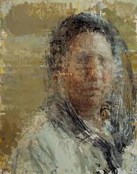 The first artist is Kai Samuels-Davis, an American contemporary artist born in Catskills, New York in 1980. Samuels-Davis studied at the Woodstock School of Art and NY Art Students league before earning his Bachelors in Fine Art from SUNY Purchase College in 2002. He continued on to earn his Masters in Fine Art from Art Center College of Design, Pasadena, CA in 2006. [1] Painting primarily with oil paints on wood canvas, his abstract style is built from a combination of brushes, and metal and rubber scrapers. The linear paint strokes and large washes of color form shapes that are recognizable as faces, but without all of the visual information seen in traditional portraiture. In addition to his untraditional twist on portraiture, his creative process of composing one portrait from multiple photo or images offers multiple points of view which crafts a lose scattered style that transcends time. His style is indicative of abstract art, which is often seen as carrying a moral dimension, in that it can be seen to stand for virtues such as order, purity, simplicity and spirituality. Each stoke displays the distant and independent scattered distractions and clarity of daily thought within a space between the representational and expressive. [2]Samuel-Davis’s was chosen for this exhibition because he directly addresses the human’s relationship with space and time. This fragmented, expressive style shows the distortion of our perspectives and perceptions of our daily lives.