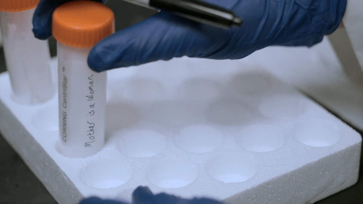 Fan’s intent was to make a cream with the estrogen extracted from his post-menopausal mother. When he gets back to the US he takes the samples to a lab and videographer Asa Westcott document the process and the participants that later try on the cream. The expression on each participant ranges from emotionless to smiling as they rub the cream into their skin.